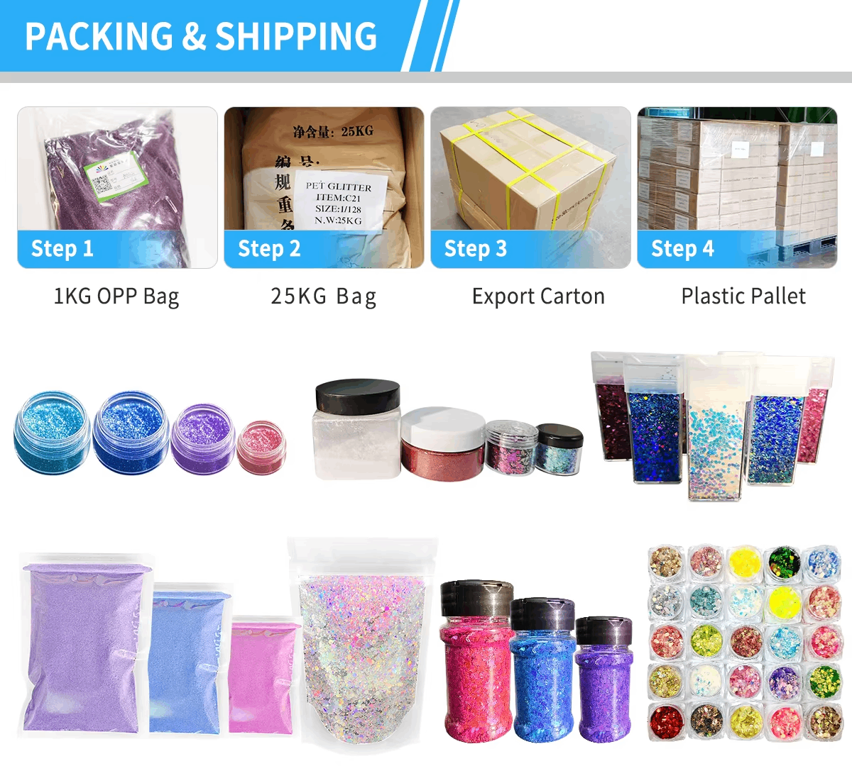 Categories: packaged glitter Series, PET glitter powder