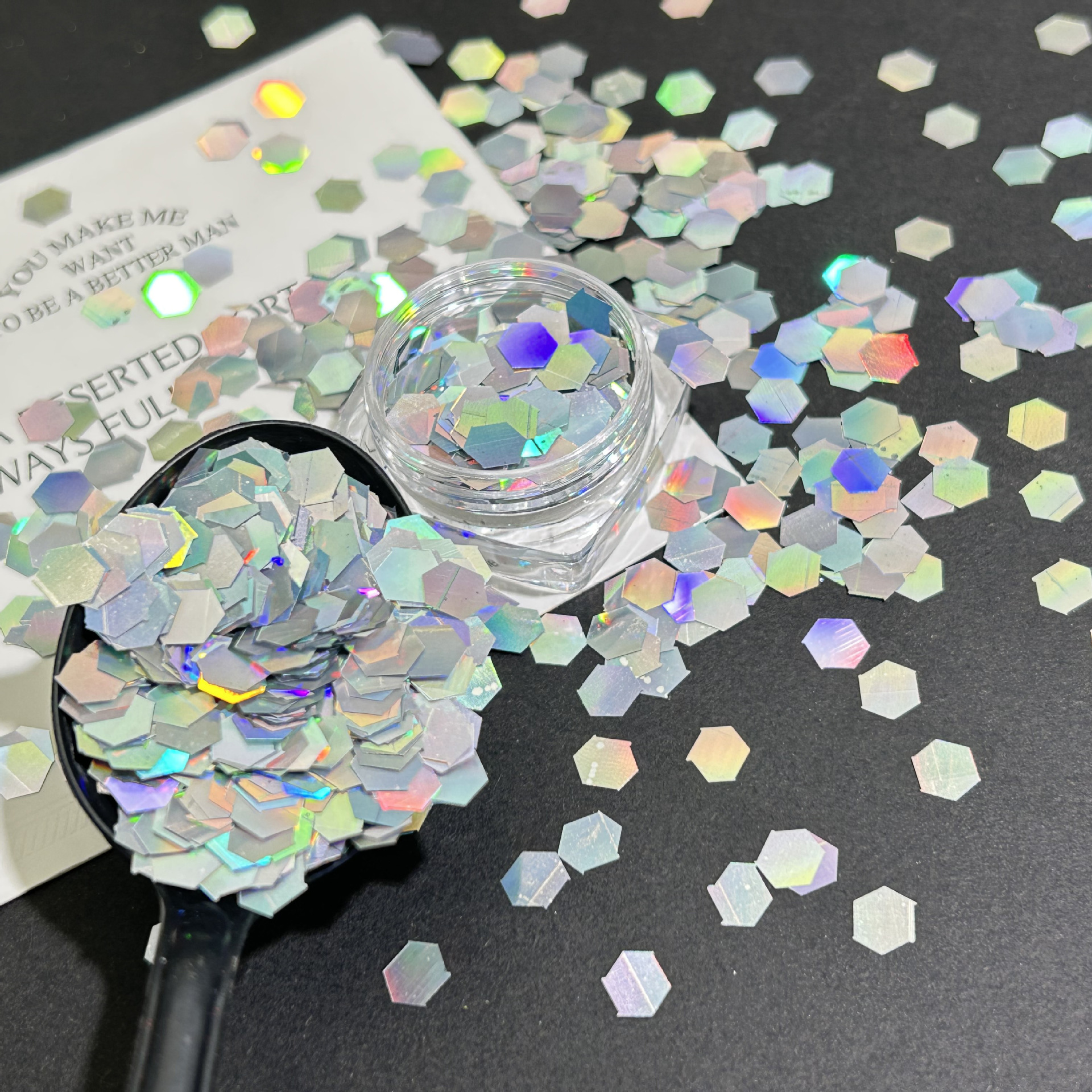 5mm laser large sequins, nail polish silver sequins, PET shiny atmosphere decoration materials, toy handicraft accessories