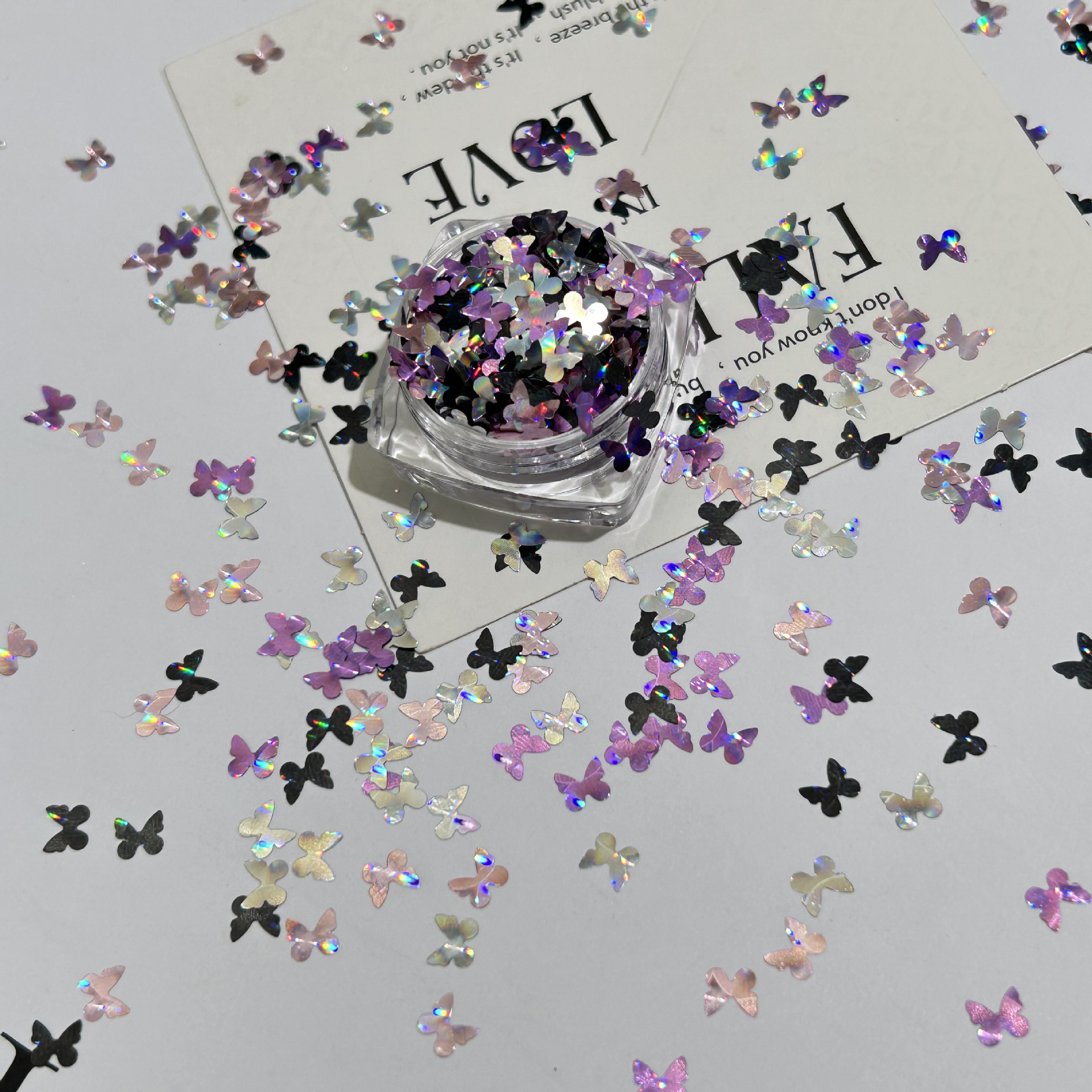 Laser butterfly sequins, nail art accessories, small butterfly decorations, lollipop toy materials, wholesale of accessories