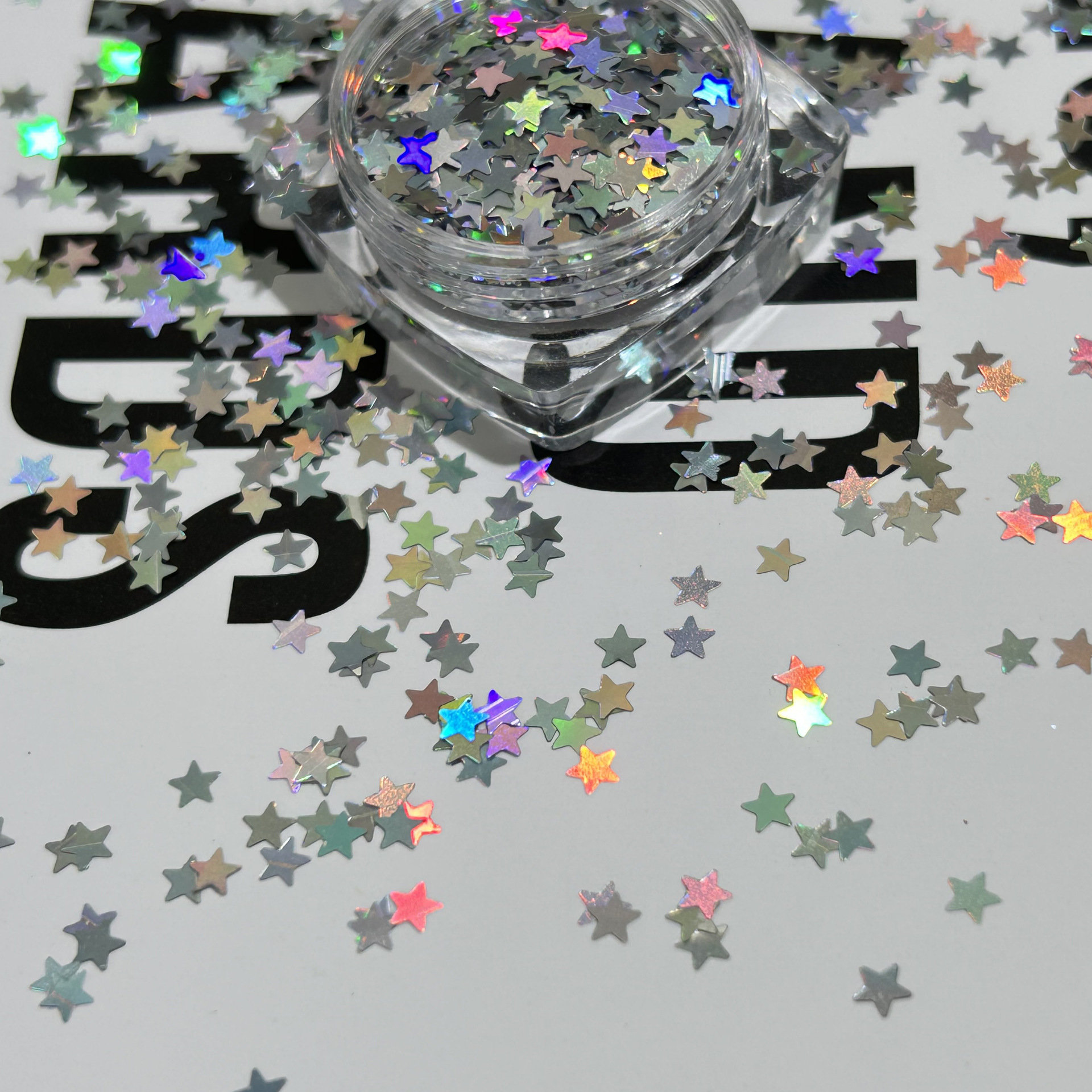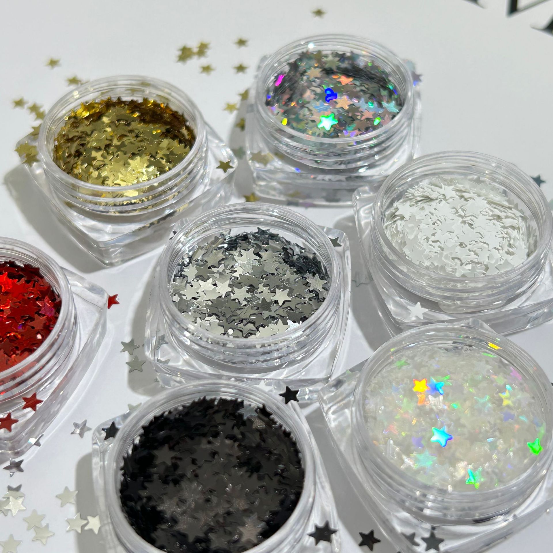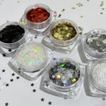 Star sequin sparkly nail art accessories with laser-etched five-pointed stars, in gold and silver colors, are selling well across the border.